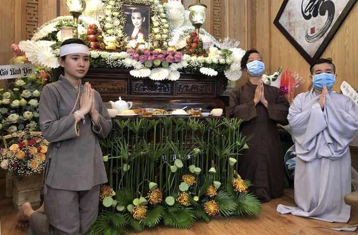 Theo thông tin bài viết này đã chia sẻ: "Cho dù có xảy ra nhiều chuyện buồn vui, mẹ Nhung vẫn là người mà em kính yêu và mang ơn suốt đời. Đâu phải cứ đưa lên mạng khóc lóc, kể lể là có hiếu. Em tự lập bàn thờ tại nơi ở và mỗi bữa ăn em vẫn để chén cơm mời mẹ Nhung ăn cùng. Đây là mâm cơm chay tự tay em chuẩn bị cúng mẹ Nhung lúc 49 ngày".