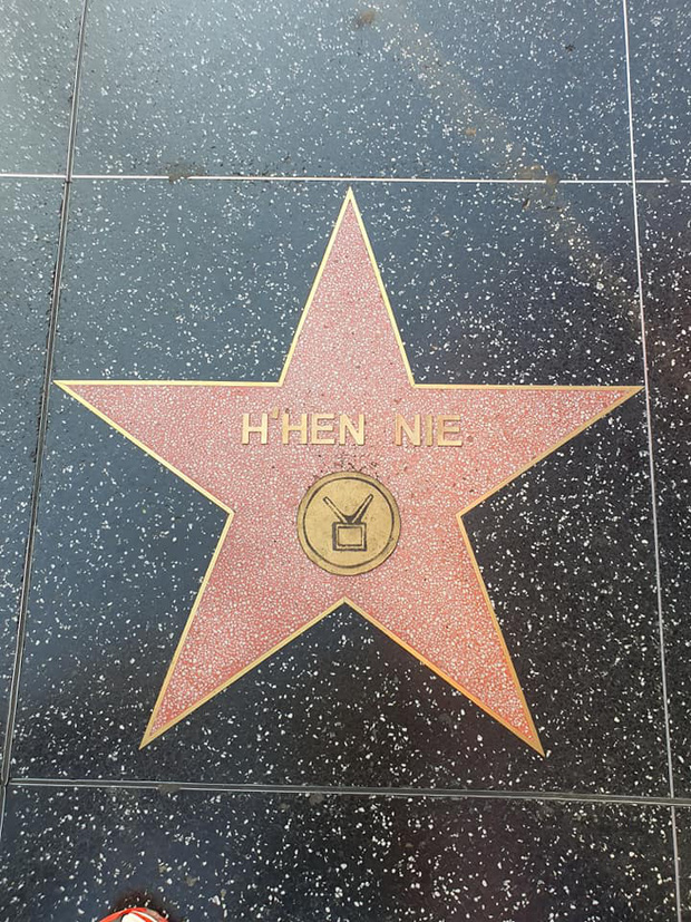 Mới đây, mạng xã hội đã xôn xao chia sẻ bức ảnh chụp ngôi sao khắn tên H'Hen Niê trên Đại lộ Danh vọng. Ngay cả H’Hen Niê cũng không giấu được bất ngờ khi nhìn thấy hình ảnh này: "Bạn có để ý cái tên này không? Ủa tên tớ trên Đại lộ Danh vọng ở Mỹ mà, có ai trùng tên không?".