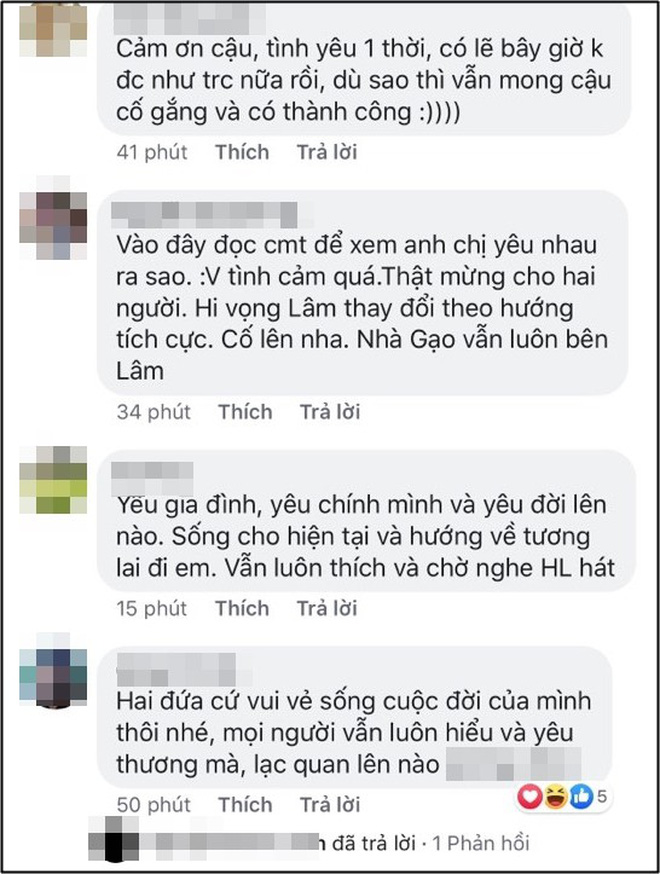 Tuy nhiên, Bảo Ngọc cũng lên tiếng bảo vệ Hoài Lâm trước những nghi vấn của cộng đồng mạng. Cô tỏ ra khá thoải mái và dành những lời tình cảm để động viên chồng: "Anh tốt hơn như vậy nhiều. Okay? Don’t think too much, don’t worry, always by your side, bae! (Đừng nghĩ quá nhiều, đừng quá lo lắng, luôn luôn bên cạnh anh!). Đứng lên và bước tiếp thôi, mọi người luôn bên anh mà!". Đặc biệt, cô không ngần ngại đứng ra bênh vực chồng khi một người hâm mộ bình luận thất vọng với sự thay đổi hiện tại của Hoài Lâm. Bảo Ngọc viết: "Không có ai phải là ai của lúc trước đâu chị ạ, ngay cả bản thân em hay chị, đôi khi mình cũng có những thay đổi mà mình không nhận ra, đơn giản, nếu như sai ở đâu thì đứng lên ở đó, chị thương thì ủng hộ từ chính con người thật của Lâm, chứ Lâm thì lúc nào cũng là Lâm thôi!".