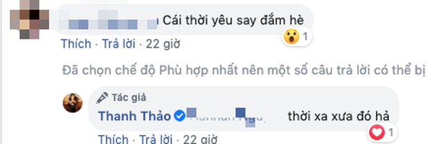 Không chỉ thế, khi 1 người bạn để lại bình luận: "Cái thời yêu say đắm nè", Thanh Thảo liền có lời đáp: "Thời xa xưa đó hả". Thậm chí, khi trả lời danh hài Kiều Oanh, chính nữ ca sĩ còn thừa nhận: "Sắp ly dị rồi chị", khiến netizen càng thêm lo lắng.