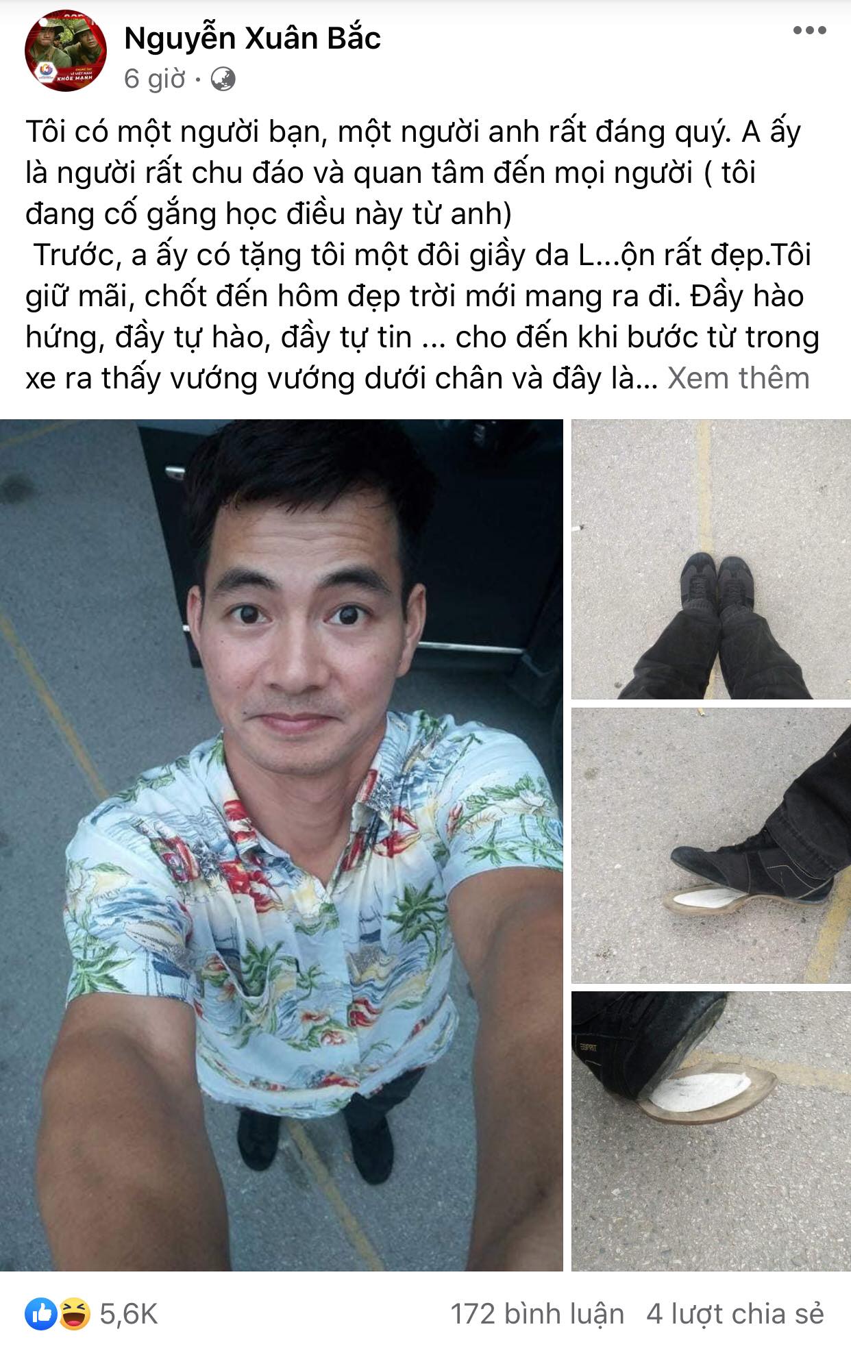 Mới đây trên trang cá nhân, danh hài Xuân Bắc đăng ảnh đôi giày mới nhưng nhưng khiến dân mạng bất ngờ khi nhìn xuống đế giày.