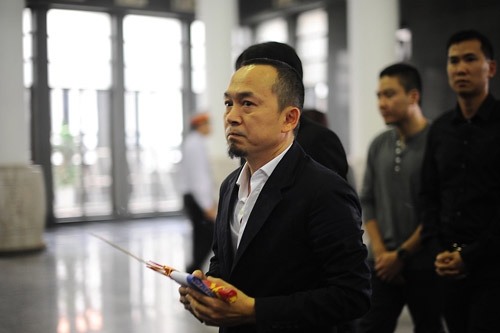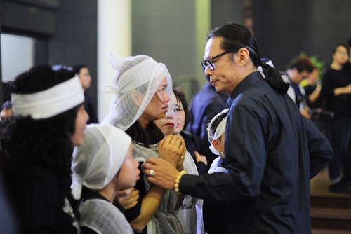 Nhà thiết kế Đức Hùng không nói nên lời khi chia buồn cùng gia đình. |
