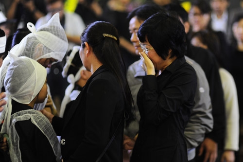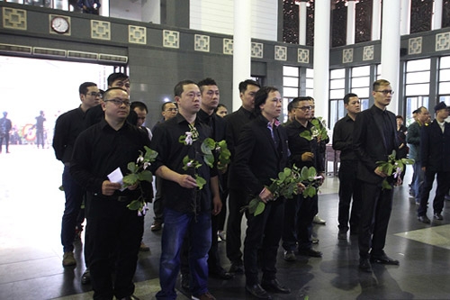 Nhiều nghệ sĩ Việt cùng anh em nhóm nhạc Bức Tường xót xa đi quanh linh cữu nam ca sĩ.