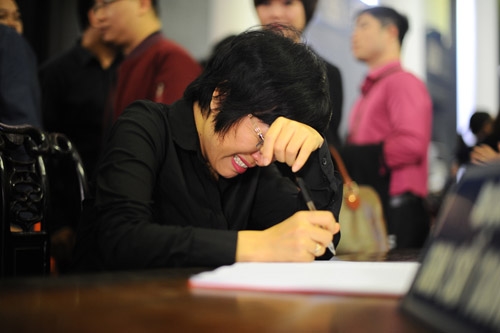 Cô vừa viết những lời cuối, vừa gục đầu khóc nức nở. |