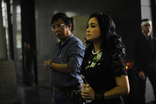 Diễn viên Kim Oanh bật khóc trong đám tang. |