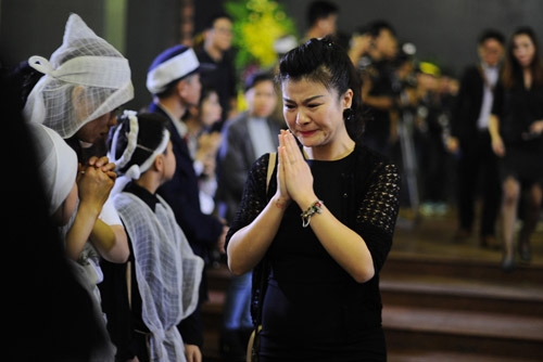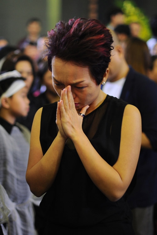 MC Thảo Vân khóc cùng người nhà khi ra chia buồn. |