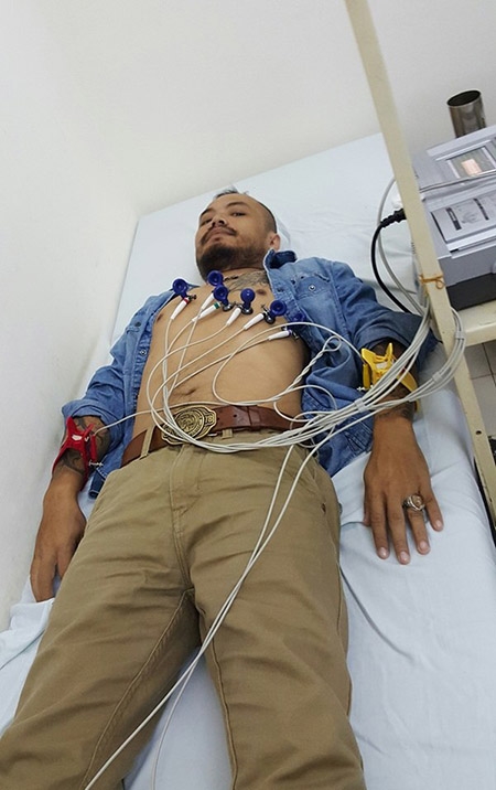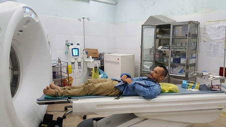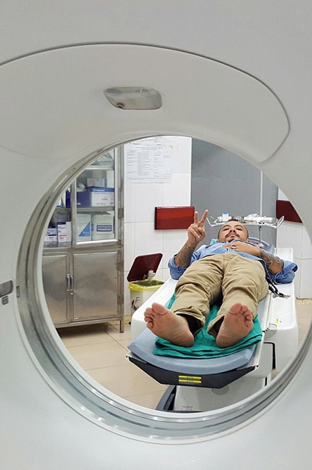 Nam rocker tỏ ra lạc quan trước khi được đưa vào máy chụp xét nghiệm |