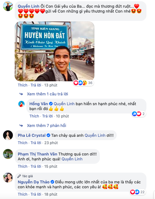 Bức thư đầy yêu thương cùng khoảnh khắc sướt mướt của Lọ Lem sau khi được mẹ đăng tải lên MXH đã khiến rất nhiều nghệ sĩ như Hồng Vân, Ốc Thanh Vân... xúc động. Riêng Quyền Linh - nhân vật chính của bức thư hiện đang có chuyến công tác xa nhà - cũng lập tức nhắn nhủ: "Ôi con gái yêu của Ba, đọc mà thương đứt ruột. Thương gửi về con những gì yêu thương nhất".
