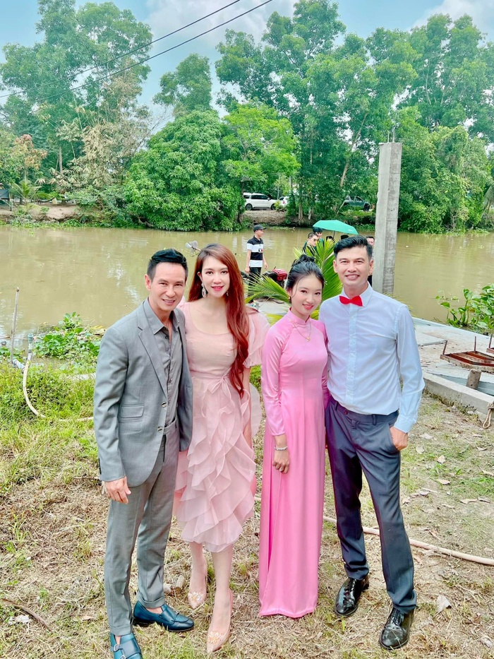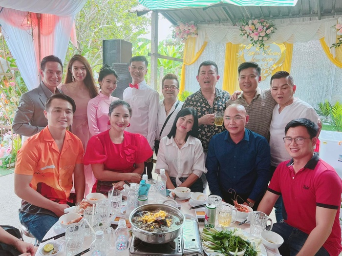 Theo loạt ảnh được chia sẻ, bà xã Tiết Cương rạng ngời xinh đẹp trong ngày trọng đại. Thậm chí trong một số ảnh chụp cùng Minh Hà - bà xã Lý Hải vốn nổi tiếng với nhan sắc không tuổi, vợ Tiết Cương còn lấn át.