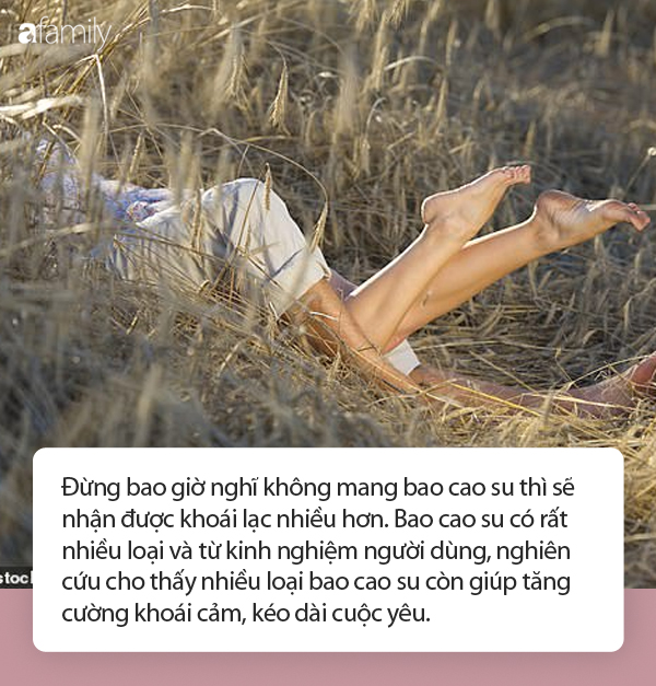 Theo BS sản phụ khoa Lê Thị Kim Dung (Bệnh viện Đa khoa Nông nghiệp), đừng bao giờ nghĩ không mang bao cao su thì sẽ nhận được khoái lạc nhiều hơn. Bao cao su có rất nhiều loại và từ kinh nghiệm người dùng, nghiên cứu cho thấy nhiều loại bao cao su còn giúp tăng cường khoái cảm, kéo dài cuộc yêu. Chưa kể, sử dụng bao cao su khi quan hệ tình dục còn giúp ngăn chặn bệnh lây truyền qua đường tình dục như HIV. Nếu bạn yêu cầu sử dụng bao cao su khi quan hệ thì đã không đến cơ sự hiện tại.