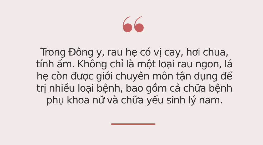 Trong Đông y, rau hẹ có vị cay, hơi chua, tính ấm. Không chỉ là một loại rau ngon, lá hẹ còn được giới chuyên môn tận dụng để trị nhiều loại bệnh, bao gồm cả chữa bệnh phụ khoa nữ và chữa yếu sinh lý nam.