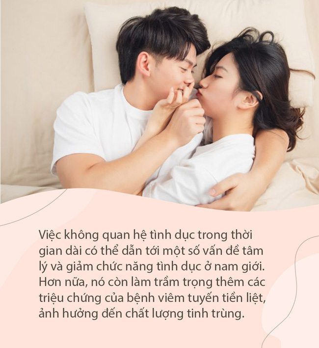Việc không quan hệ tình dục trong thời gian dài có thể dẫn tới một số vấn đề tâm lý và giảm chức năng tình dục ở nam giới. Hơn nữa, nó còn làm trầm trọng thêm các triệu chứng của bệnh viêm tuyến tiền liệt, ảnh hưởng đến chất lượng tinh trùng.
