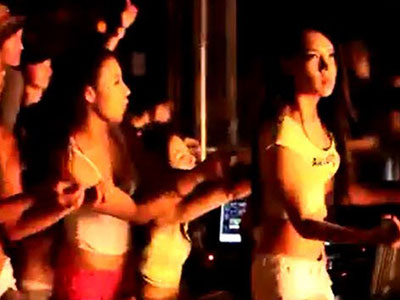 Mặc quần short và áo bó khoe đường cong gợi cảm, dàn chân dài lắc lưu trong bar theo đội hình khiến nhiều chàng trai không thể rời mắt khỏi màn hình.