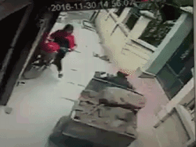 Clip: Thót tim cảnh bé trai bị hất văng xuống đất do tránh xe công nông trong ngõ hẹp