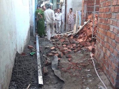 Tường nhà đang xây đổ sập, đè 2 người đi đường
