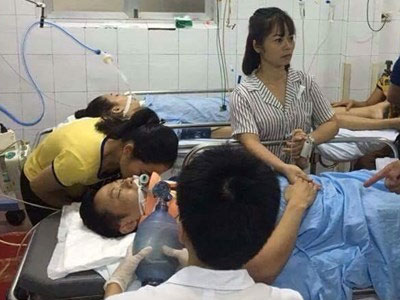 Hai em học sinh đi xe đạp điện, do trượt vào sỏi đá dưới lòng đường đã tự ngã lên vỉa hè va chạm vào một đống tôn. Hậu quả làm một em bị cứa cổ, một em bị đứt tai.