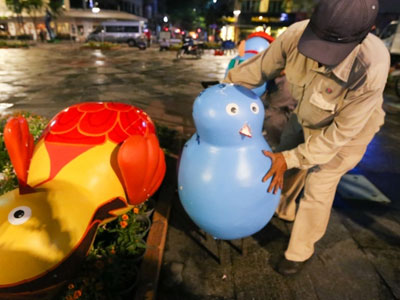 300 công nhân dọn dẹp đường hoa Nguyễn Huệ trong đêm