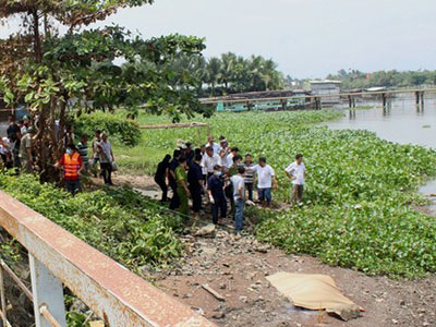 Tại hiện trường, một người đàn ông khoảng 50 tuổi và một bé trai 14 tuổi nằm bất động, chảy nhiều máu do nhảy từ trên cầu Phú Lương xuống đất.