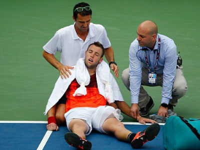 Ngôi sao trẻ của nước chủ nhà Jack Sock xin bỏ cuộc ở vòng hai, khi đang dẫn trước đối thủ Ruben Bemelmans hôm 3/9.