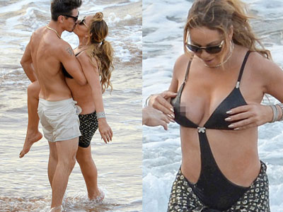 Mariah Carey ôm hôn trai trẻ cuồng nhiệt vô tình để lộ vòng một