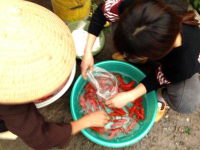 Ngay từ hôm nay (22 tháng Chạp ), trên khắp các chợ lớn của thủ đô Hà Nội đã tấp nập kẻ mua, người bán.. Mũ, giày, tiền, vàng, cá chép, hoa quả... cũng vì vậy mà được dịp tăng giá.