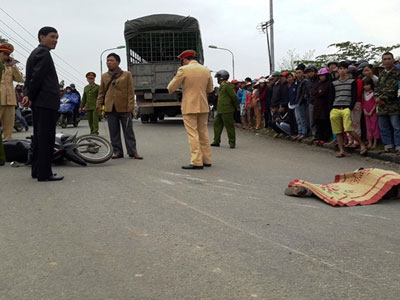 Trên đường rẽ lên cầu, chiếc xe tải tông vào đuôi xe máy chạy cùng chiều. Nam thanh niên ngã văng ra và bị chính chiếc xe tải cán tử vong.