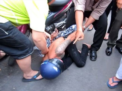 Sau khi siết cổ cô gái khiến nạn nhân nằm bất động, Tiến cướp xe máy bỏ đi. Cô gái tỉnh lại và trình báo cảnh sát, nghi phạm bị bắt sau một ngày lẩn trốn.