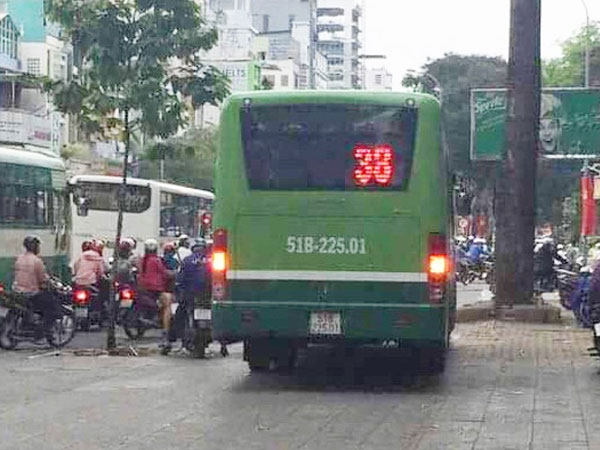 Clip: Không dừng chờ đèn đỏ, xe buýt bẻ lái leo thẳng lên vỉa hè Sài Gòn để lưu thông