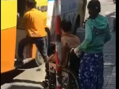 Chiếc xe buýt dừng lại đón khách, nhưng bỏ lại một khách khuyết tật đang ngồi trên xe lăn. Những hình ảnh này đã được ghi lại và đăng tải trên mạng xã hội... gây bức xúc dư luận.