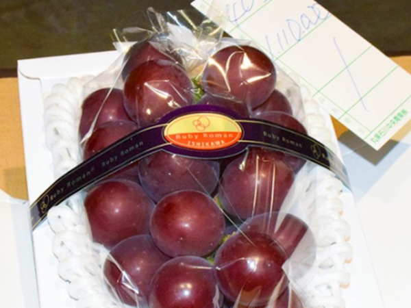 Một chùm nho Hồng ngọc La Mã (Ruby Roman) 30 trái vừa được bán đấu giá thành công tại Nhật với giá 1,11 triệu yen, phá vỡ kỷ lục mức 1 triệu yen của chùm nho Hồng ngọc La Mã được bán vào năm ngoái.
