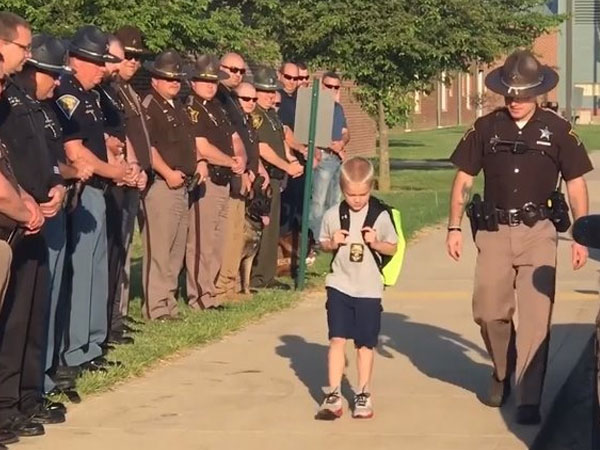 70 cảnh sát Mỹ hộ tống một cậu bé 5 tuổi đi học