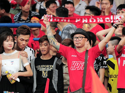Sau khi trận đấu giữa Hải Phòng vs Sông Lam Nghệ An kết thúc, các cổ động viên đội bóng đất cảng tràn xuống sân và đồng loạt hô vang Hải Phòng vô địch.