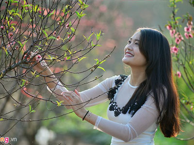 Vườn đào Nhật Tân nở rộ, nhiều bạn trẻ tranh thủ tạo dáng chụp ảnh, ghi lại những khoảnh khắc đầu xuân.