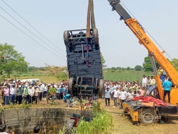 Chiếc xe kéo đang chạy trên đường thì bất ngờ mất lái, lao xuống giếng khiến 7 nữ công nhân tử vong.