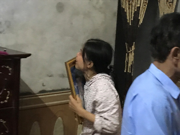Nghe tin con trai bị chém rời thi thể, bà Nguyễn Thị Thoa và nhiều người thân trong gia đình đau xót, bàng hoàng. Trong đám tang, bà Thoa liên tục ôm di ảnh con gào khóc.