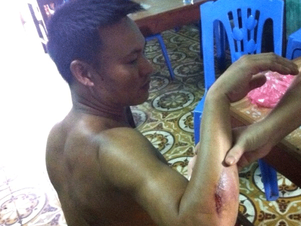 Vừa ra mở cổng, anh Trà bị 4 thanh niên ngổ ngáo tại địa phương vung dao, kiếm chém gây thương tích nặng.