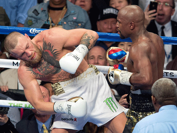 Nhà vô địch UFC bị Floyd Mayweather hạ nốc ao kỹ thuật ở hiệp 10, trong “Trận đấu tỷ đô” diễn ra tại Las Vegas hôm qua 27/8.