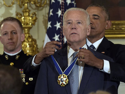 Chiều 12-1 (giờ địa phương), Tổng thống Mỹ Barack Obama bất ngờ trao tặng Huân chương Tự do cho cấp phó Joe Biden trong một buổi lễ đầy cảm xúc.
