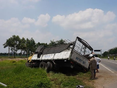 Bị ong chích, tài xế lái xe tải lao xuống mương