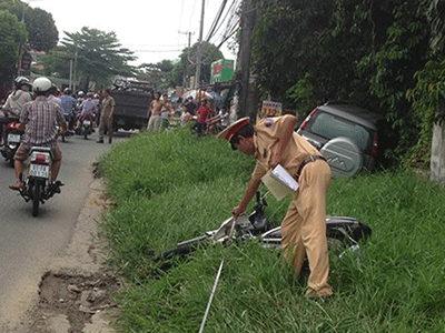 Chạy xe rất chậm nhưng chị Sâm đang mang bầu, bị ô tô mất lái, tông và kéo lê gần 10m.