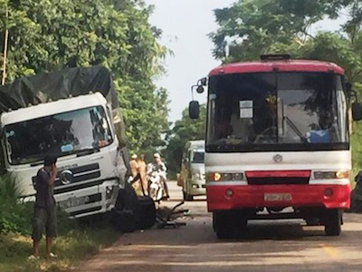 Chiếc xe 7 chỗ được cho đã lấn làn và bị một chiếc xe tải chạy ngược chiều tông trực diện trên đường Hồ Chí Minh qua Thanh Hóa khiến tài xế xe 7 chỗ bị thương nặng.