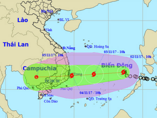 Sáng 2/11, áp thấp nhiệt đới chính thức mạnh lên thành bão số 12 trong năm, tên quốc tế là Damrey, sức gió giật cấp 14 (hơn 150 km/h) ở tâm bão.