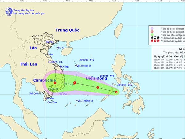 Vùng áp thấp di chuyển nhanh, dự báo sẽ đi vào biển Đông và có khả năng mạnh lên thành bão. Trong 24-48h tới, tâm bão cách bờ biển các tỉnh Phú Yên-Khánh Hòa khoảng 240km về phía Đông.
