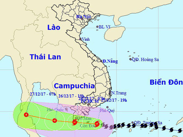 Bão Kai-tak đổi hướng di chuyển, không khí lạnh trải rộng xuống Nam Bộ