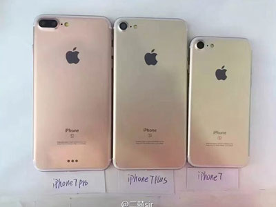 Bản mẫu iPhone 7 cùng hai biến thể Pro và Plus cùng lúc xuất hiện trong bức ảnh rò rỉ từ Weibo.