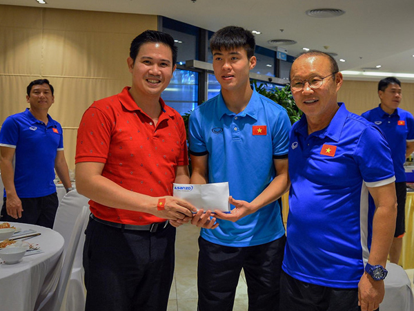 Sau chiến thắng bán kết lượt về của đội tuyển Việt Nam tại AFF Cup, CEO Asanzo đã trao tận tay huấn luyện viên Park Hang-seo 300 triệu đồng để cổ vũ tinh thần các cầu thủ.