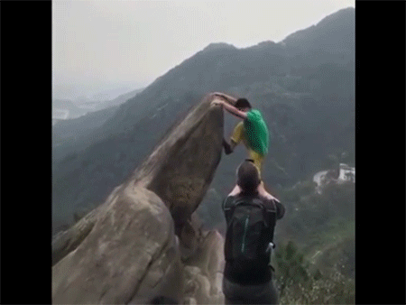 Clip thanh niên Trung Quốc bị trượt khỏi vách đá vì mải mê chụp ảnh khiến người xem thót tim.