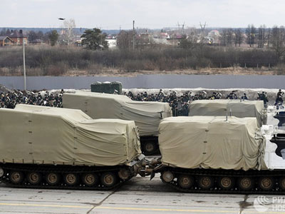 Tại căn cứ quân sự Alabino đang diễn ra hoạt động tập luyện của Quân đội Nga nhằm chuẩn bị cho Lễ duyệt binh kỷ niệm 72 năm chiến thắng phát xít.