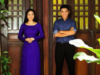 Nam diễn viên và bà mẹ một con cùng diện áo dài truyền thống dự show thời trang ủng hộ nhà thiết kế Đinh Văn Thơ.