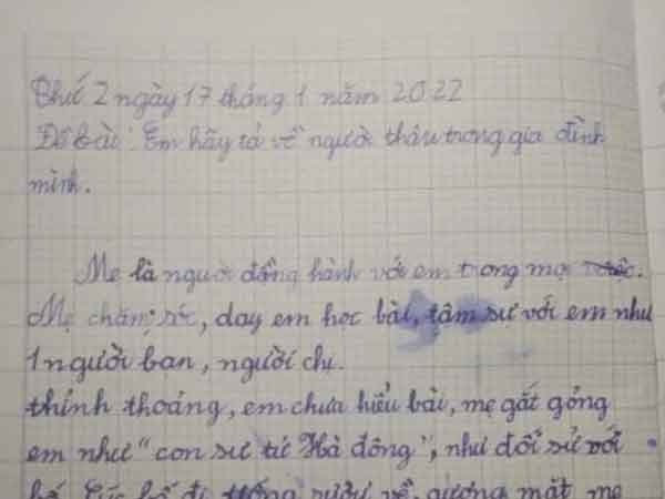 Bài văn tả mẹ như đang 'trả treo' với giáo viên: Chỉ vỏn vẹn 5 câu, cô giáo đọc xong mà tức anh ách